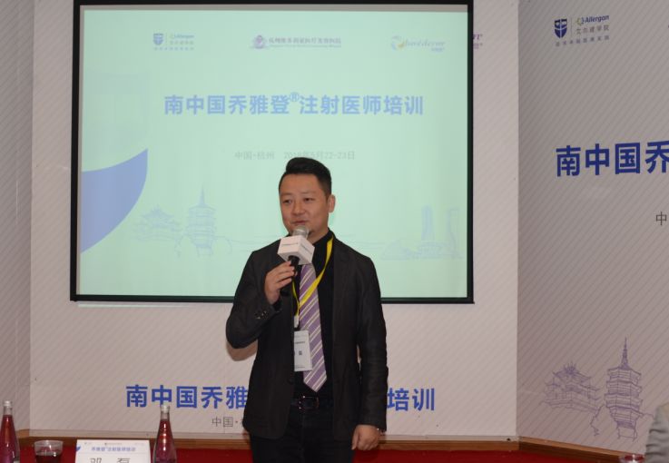 杭州維多利亞醫(yī)療美容醫(yī)院院長程健歡迎詞,他贊賞美國艾爾建公司作為全球醫(yī)療美容領(lǐng)域的領(lǐng)導(dǎo)者,致力于中國醫(yī)療美容市場的培育和開發(fā),培訓(xùn)注射醫(yī)師,樹立中國醫(yī)美市場優(yōu)良風(fēng)氣的行為。