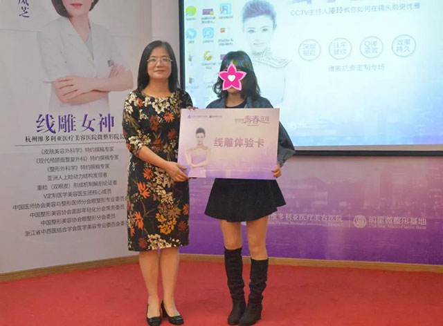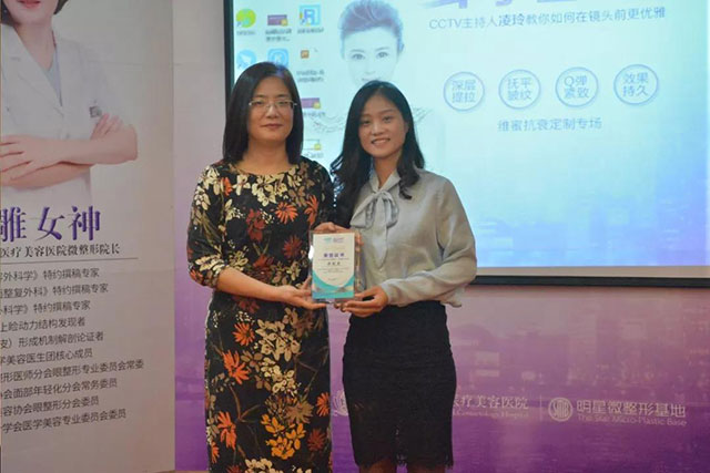 在活動(dòng)zui后,許院長(zhǎng)授予主持人凌玲為杭州維多利亞醫(yī)療美容醫(yī)院明星微整形基地會(huì)員,在一片歡聲笑語中我們的沙龍活動(dòng)也落下了帷幕。